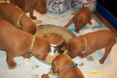 Biene und Eddies Welpen im Welpenhaus 1 Monat und 9 Tage alt