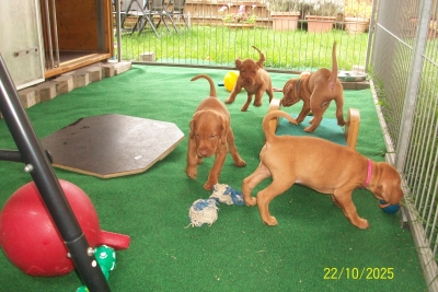 Die Welpen wachsen liebevoll in unserer Familie im Haus auf. Sie werden mit den verschiedensten Umweltgeräuschen und mit dem Autofahren vertraut gemacht. Da sie bei uns im Hunderudel aufwachsen, bekommen sie auch schon die ersten sozialen Kontakte. Nach der 4. Lebenswoche können die Kleinen das erste Mal von ihren zukünftigen Besitzern besucht werden. Die Welpen werden entwurmt, geimpft, gechipt und erhalten Papiere, sowie ein Welpenstarterpaket. Ebenso erhalten sie einen EU-Heimtierausweis (Impfausweis).